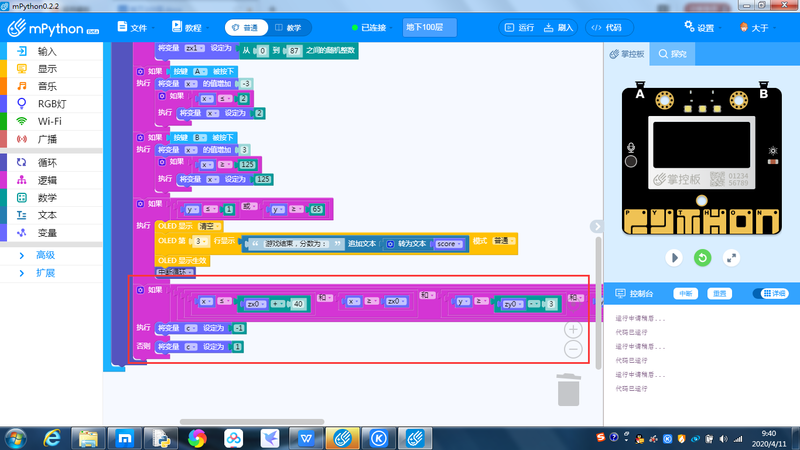 好啦!以上就是我制作的“掌控板_地下100层”项目了,整个过程很简单,同学们跟着我一起做下来一定可以的!大家还有什么奇思妙想请私信我或是在评论区留言,希望我们一起做出更好更有趣的小项目。愿你们学得开心,玩得愉快